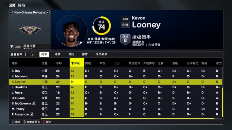 8月30日,NBA2K26游戏正式公布球员能力值,鹈鹕队评分如下:
